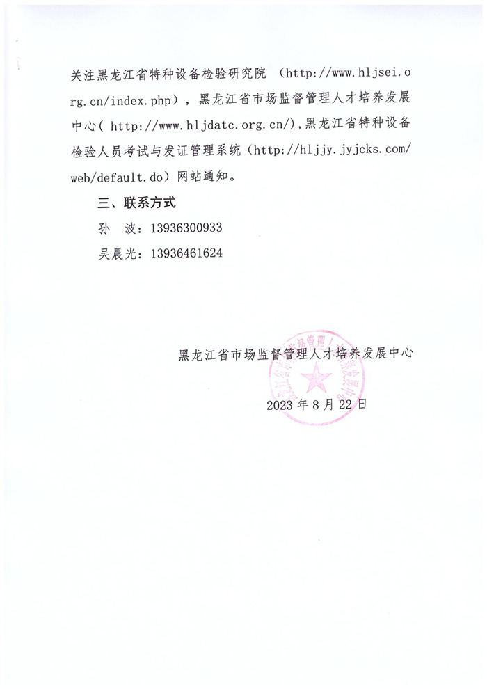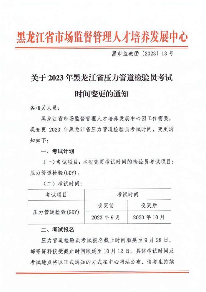 关于2023年黑龙江省压力管道检验员考试时间变更的通知