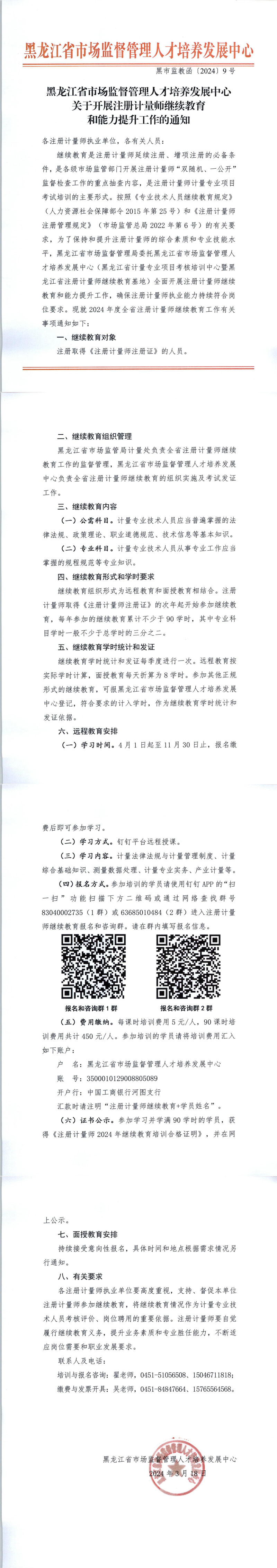 (2024年度)关于开展注册计量师继续教育和能力提升工作的通知