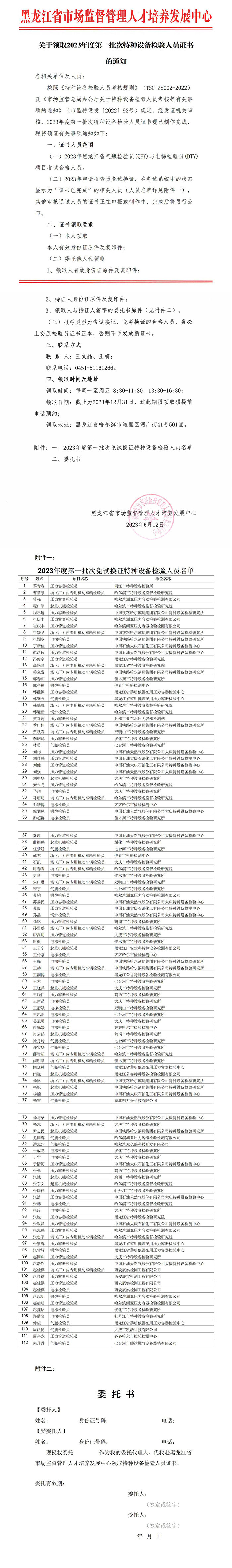 关于领取2023年度第一批次特种设备检验人员证书的通知